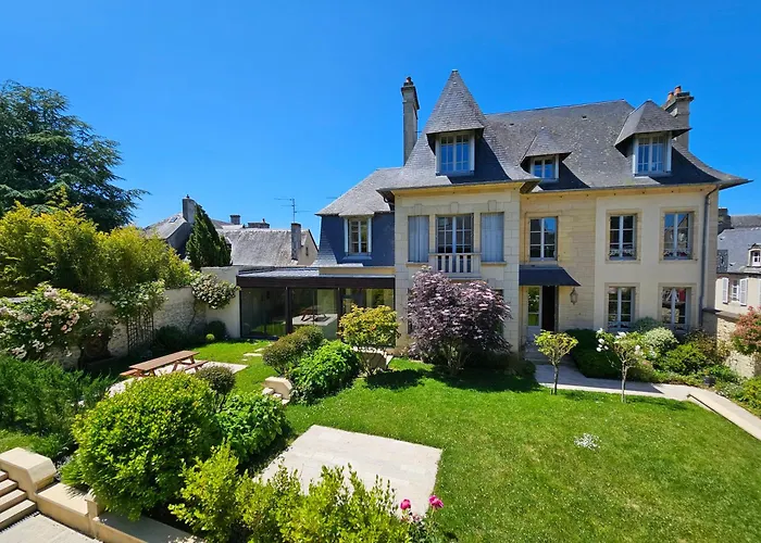 Situated just 10 minutes' walk from Bayeux Embroidery, the 3-bedroom Villa Bajocasse Beautiful Charming House Bayeux features a terrace with views of the city.